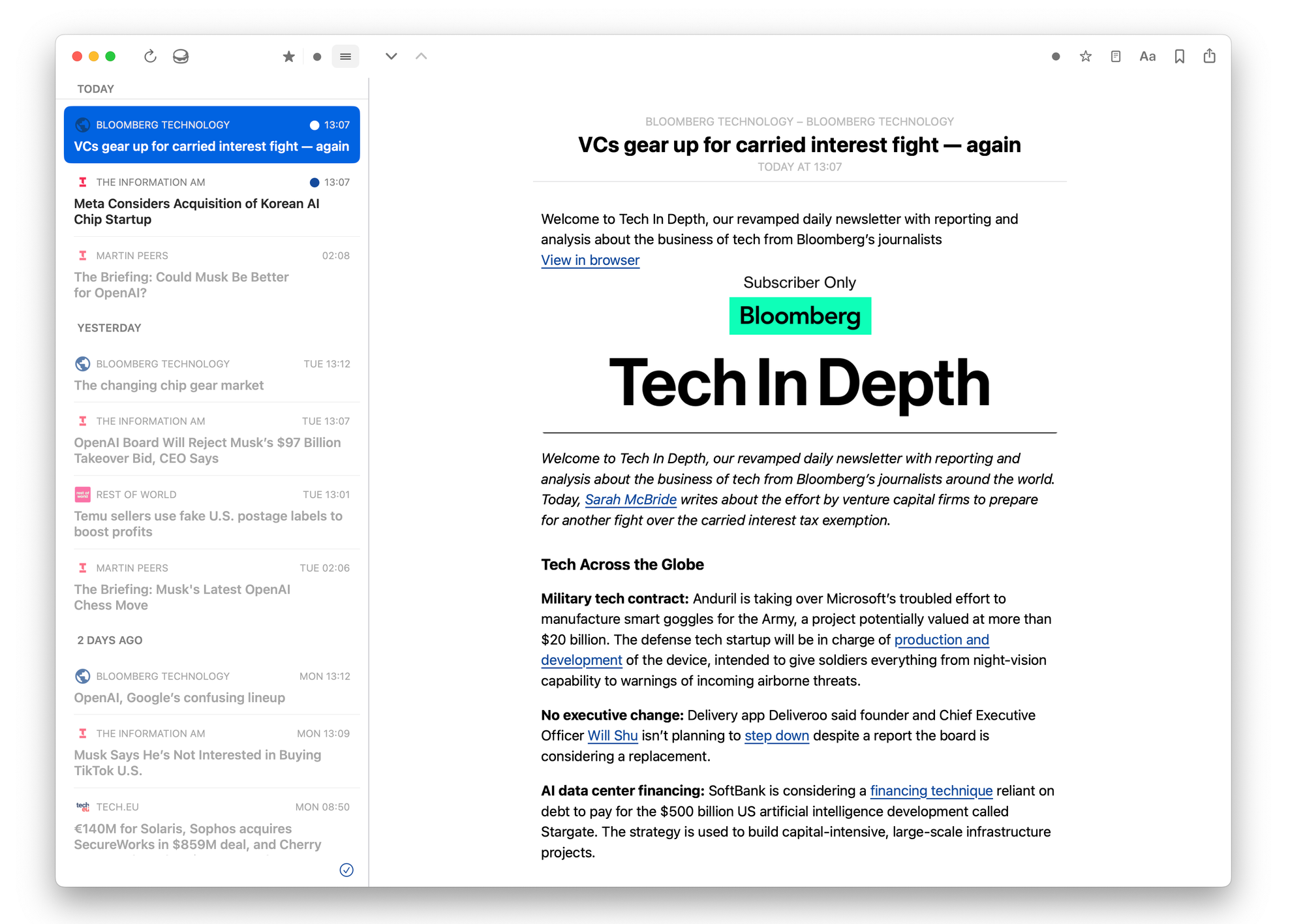 - Daily: The Briefing and The Information AM (both by The Information, which does excellent tech coverage), Bloomberg Tech In Depth. I still miss TechFT dearly.